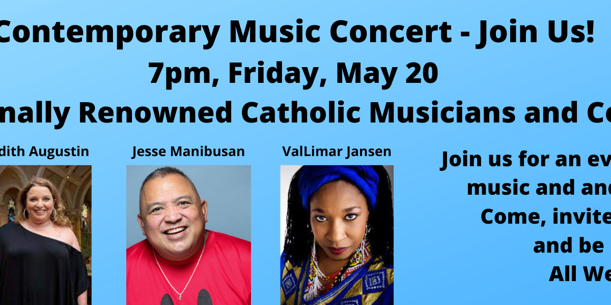 Please join us on Friday at 7pm for an inspiring contemporary music concert followed by refreshments with John Angotti and his friends. Sr. Rebecca will also be performing! Allow yourself the time to slow down, fill your soul, rejoice, and celebrate God’s love! It will be a wonderful evening of fantastic music and faith sharing, a time to take a break after a week of work, household chores, or schoolwork.